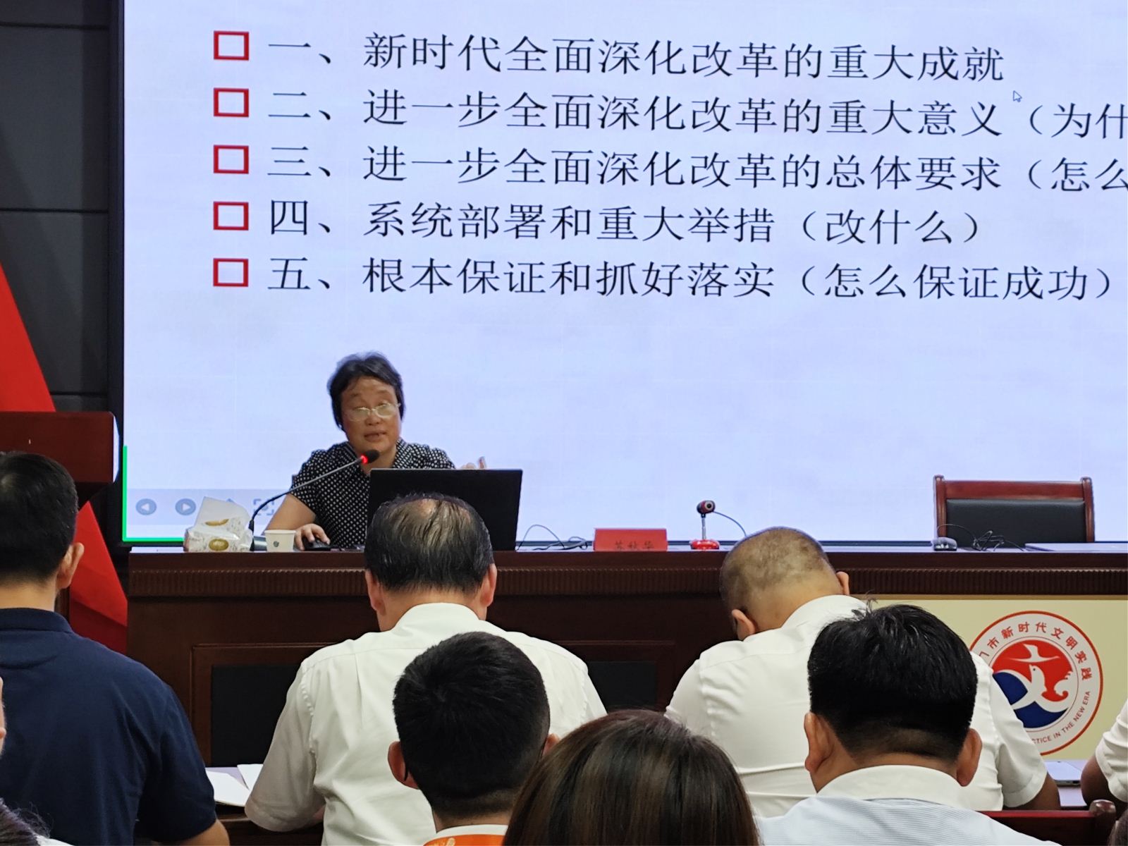 苏副校长以《为中国式现代化提供强大动力和制度保障—深入学习贯彻党的二十届三中全会精神》为题,从全面深化改革的重大意义、总体要求、系统部署和重大举措、根本保证和抓好落实四个方面,深入浅出地为公司全体党员详细解读了党的二十届三中全会的深刻内涵与实践导向。