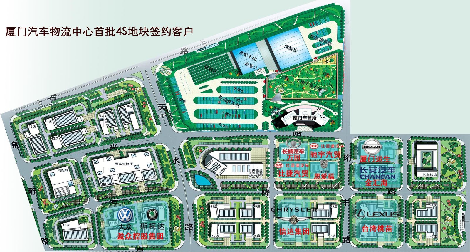 2月28日,厦门汽车物流中心汽车城项目部迎来开春大喜,4S地块招商首战告捷,原计划首批只推向市场的8幅地块,备受汽车4S经销企业追捧,供不应求,增加至14幅,合约面积达8万余平方米,收取定金280万元,较好的完成了前期既定招商目标。成功签约进驻本项目的企业包括盈众集团、信达汽车、台湾桃苗汽车、运生汽车、万国等近十家汽车经销企业,囊括了雷克萨斯、大众、克莱斯勒等多数中高端汽车品牌。